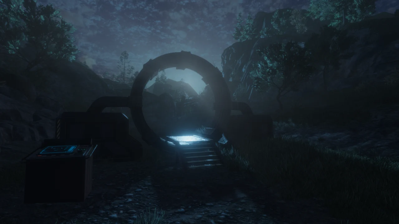 夕暮れのアウトドアフィールドに設置されたゲートの先は謎の研究所。徘徊するエンティティを避けつつ次なるテレポート装置を起動するのが目的のスリリングなホラーワールドとなってます。https://t.co/3hXLUMeS7Y