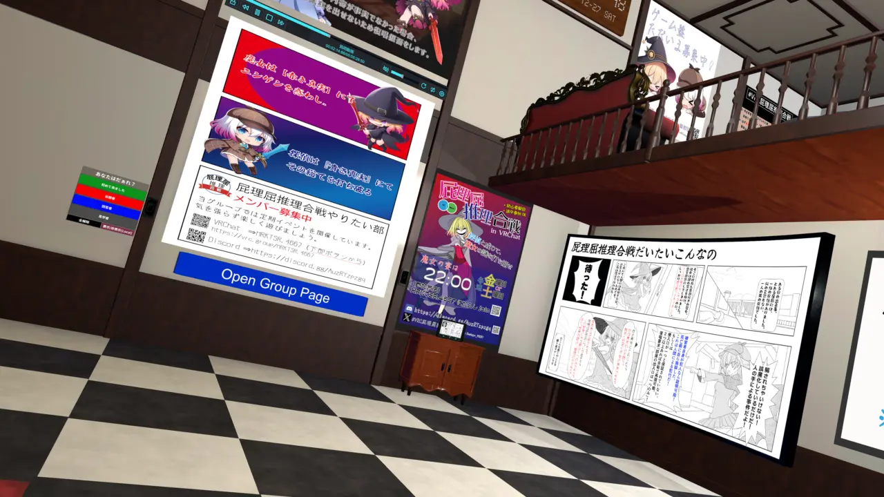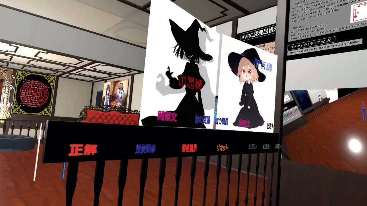 水平思考ゲーム「屁理屈推理合戦」が遊べるワールドです。