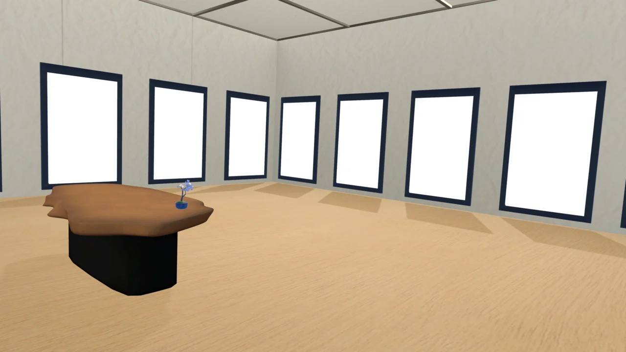 その場で撮影した自分の写真を展示して自分のフォトギャラリーを作ってみよう! エントランスフロアの右側にアバター撮影ギミックがあります。最大16枚まで撮影可能です。