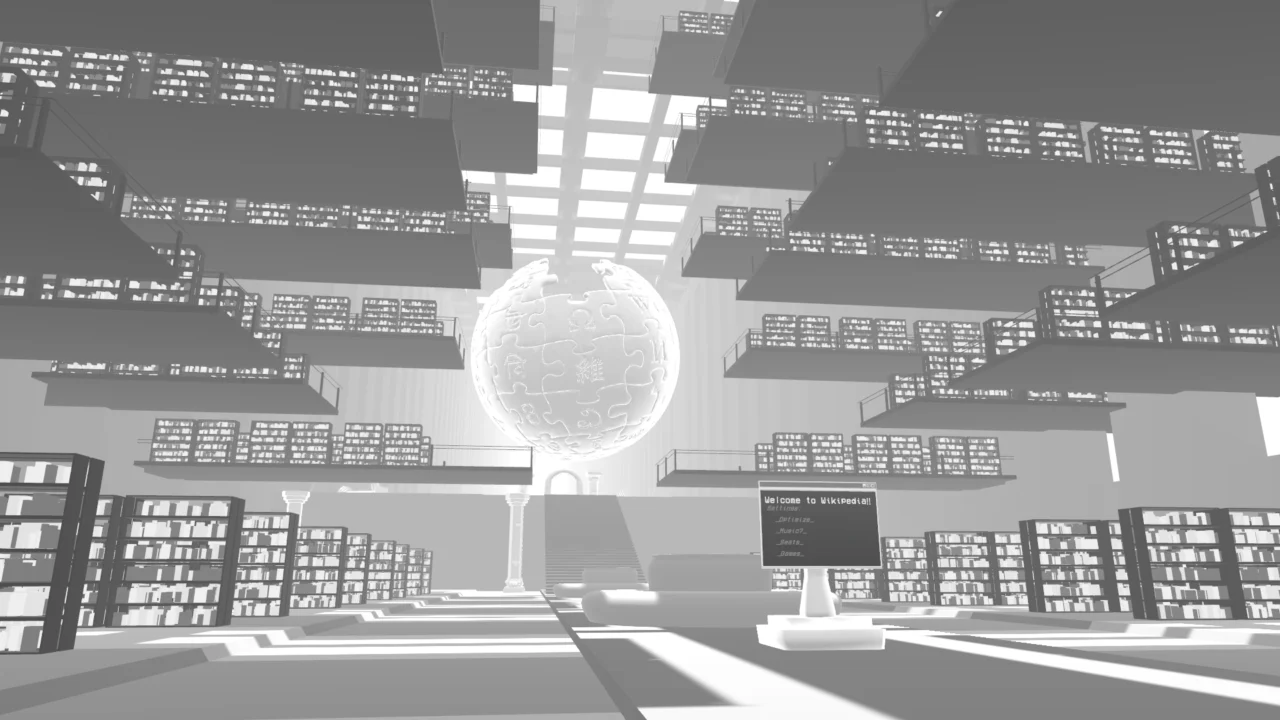 Wikipediaをイメージした全体的に白いワールド。