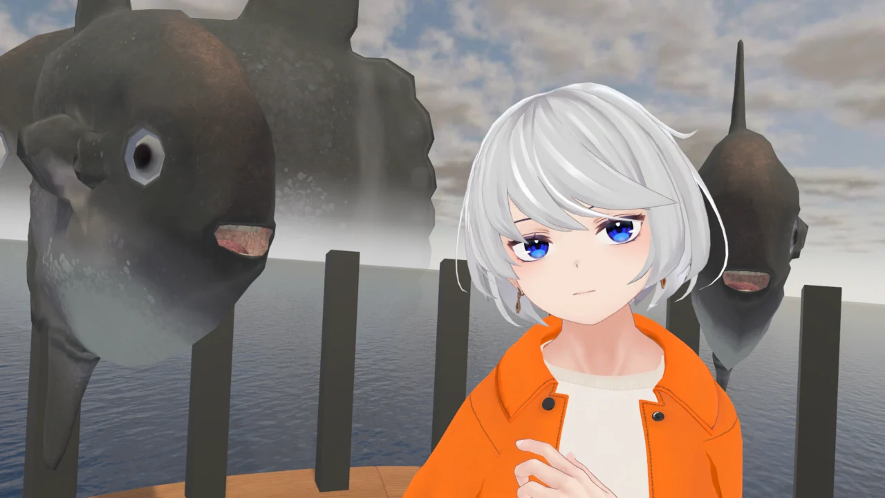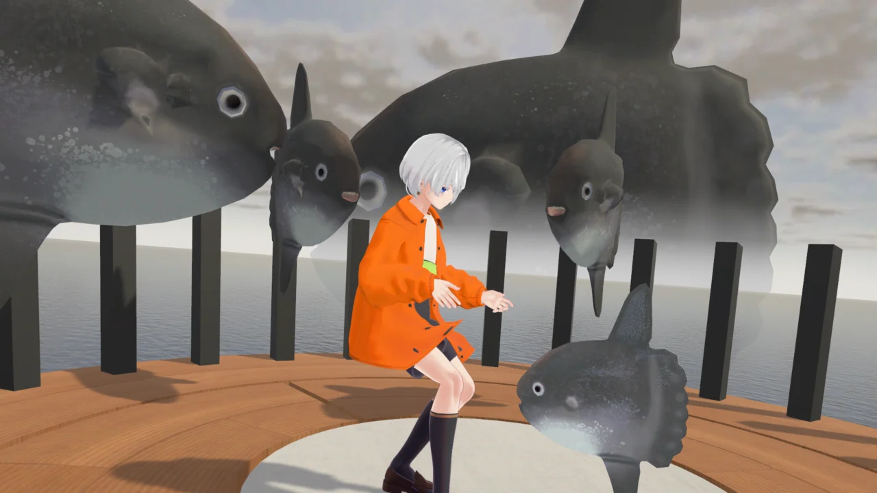 マンボウに囲まれて過ごす、一人から集会まで使える落ち着いた空間。各種マンボウアバターのペデスタル設置。あなたもきっとマンボウになりたくなる。