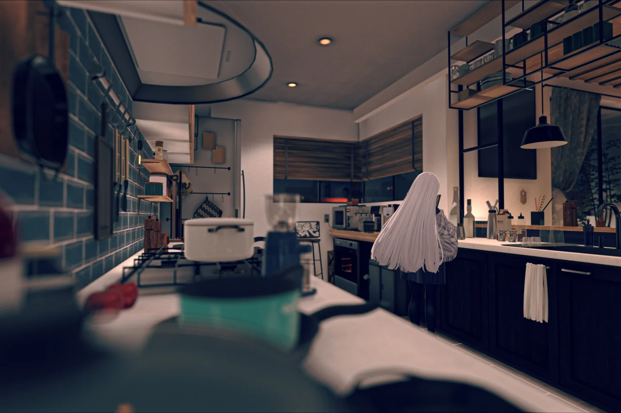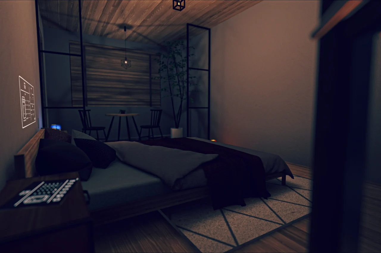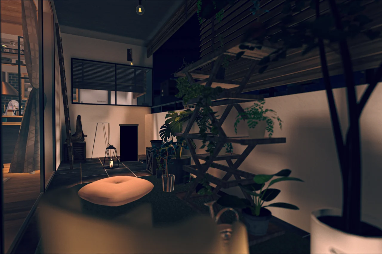 ゆったり寝転がれるベッドルーム、作業や音楽鑑賞に最適なリビング、柔らかい照明のキッチンなど、日常を過ごしたくなるような部屋を意識して作りました。