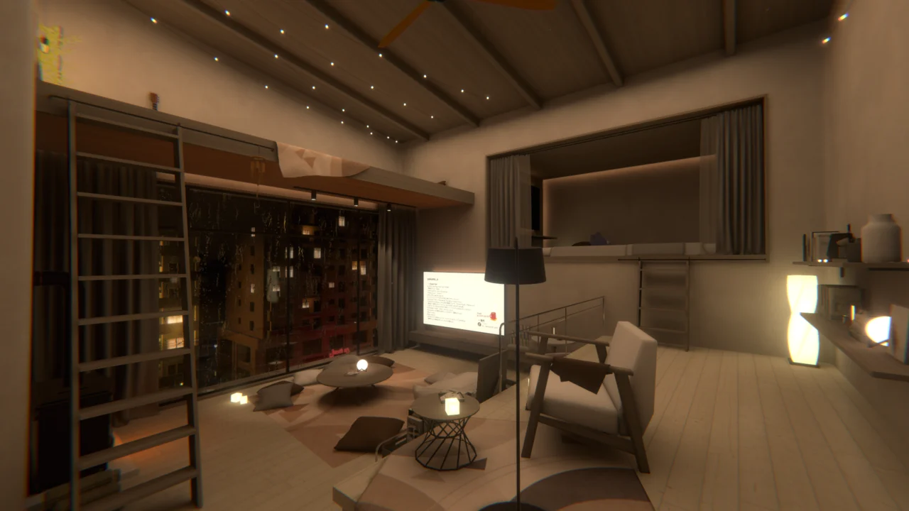 | ワールドの説明: YamaPlayer‚ Qvpen‚ mirror このワールドはねこやま君様のアセット「3Dモデル [Chill Room N10]」を使用して製作しました。その他の使用アセットはワールド内動画プレイヤーを停止してご確認ください。 |
