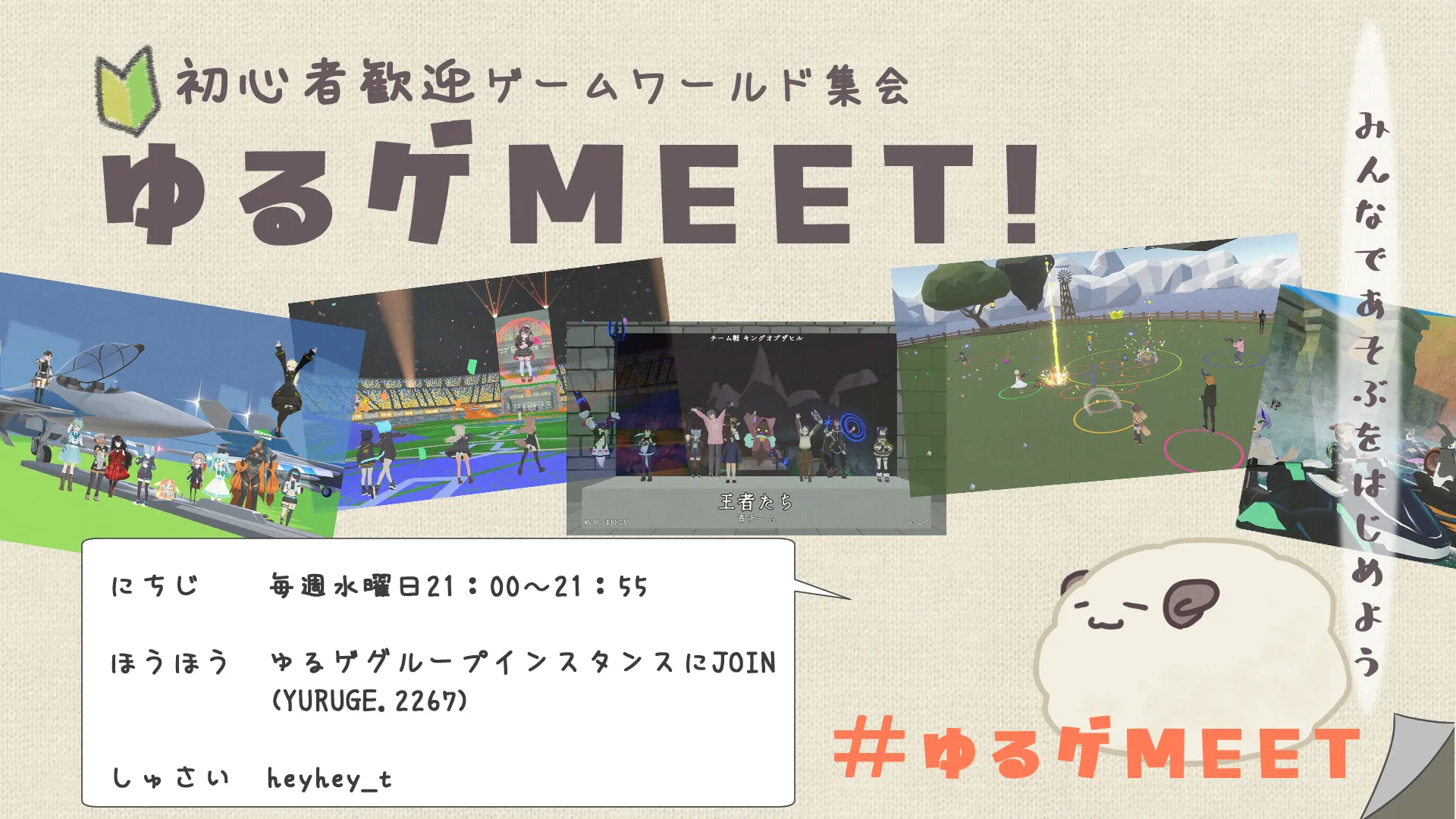 「みんなで遊ぶを始めよう!」ゆるゲMEETは初心者でも楽しく遊べるゲームワールド集会です。