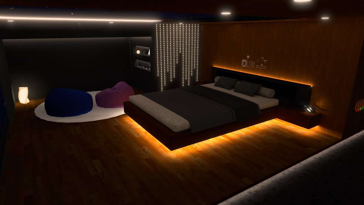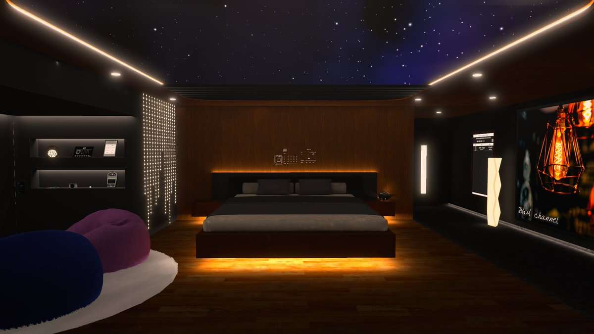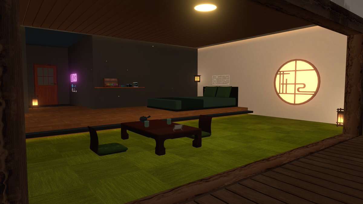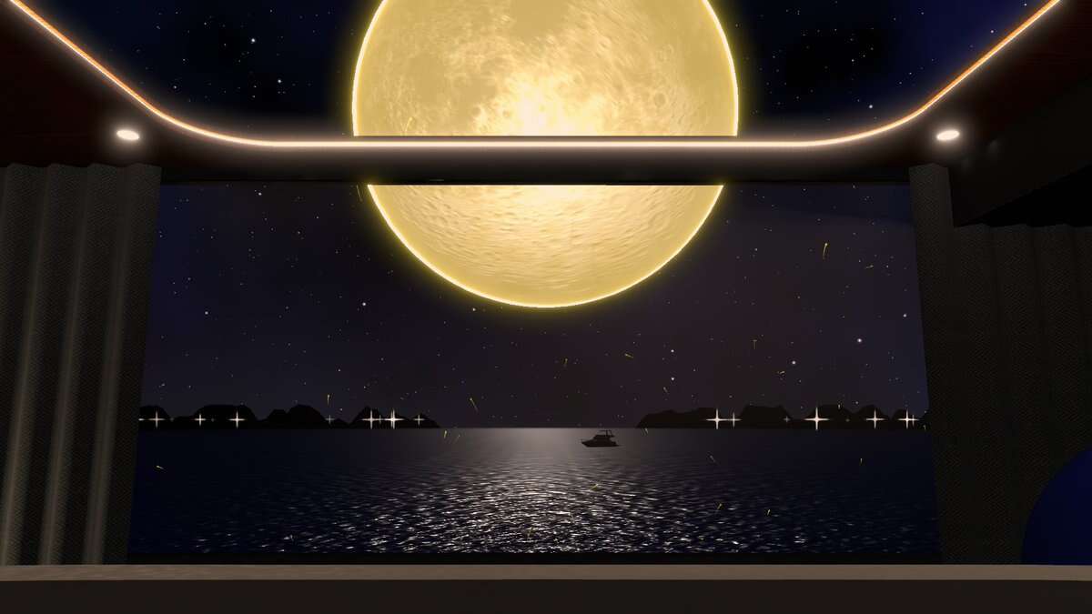満月と星空が見える、ラグジュアリーな2人用のチルワールドです。 窓と天窓はそれぞれ閉められます。 (PC Only)
