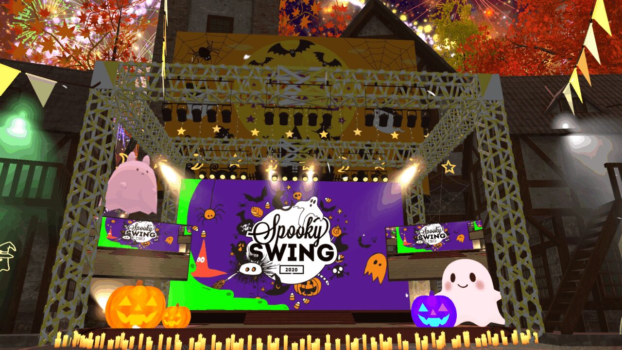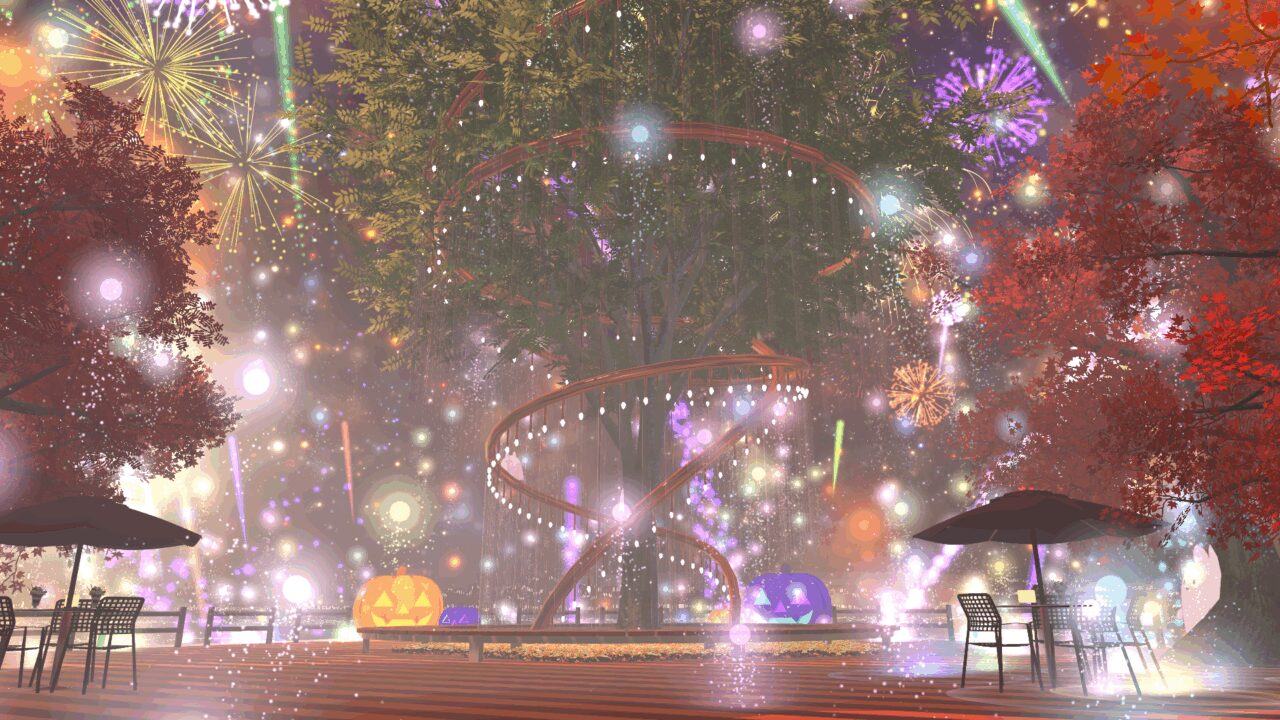 パーティクルや花火たくさんのハロウィンワールドです! 華やかでめちゃくちゃ写真映えします。